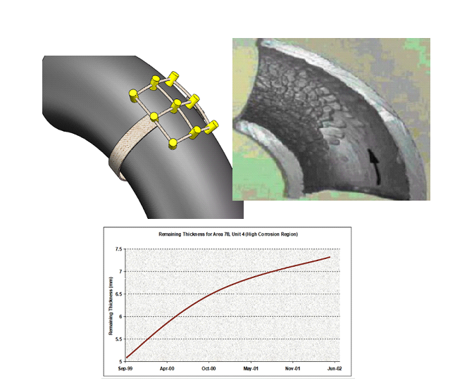 Using RTL variable temperature resistance array scanning technology, array sensors are arranged on the elbow for real-time on-line monitoring, which can effectively prevent the erosion corrosion leakage of the elbow.