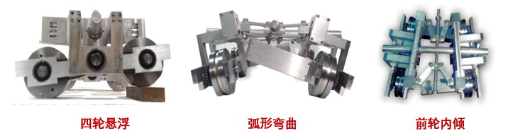 四輪獨(dú)立懸浮、懸浮行程不小于30毫米、采用偏置式車輪,橫梁弧形彎曲、前輪內(nèi)傾/外傾等先進(jìn)技術(shù),爬行器負(fù)重不小于90公斤,且爬行器能輕松越過1英寸的障礙物,用于儲(chǔ)罐罐壁、罐頂、球罐、塔器等大型容器壁內(nèi)外腐蝕和焊縫缺陷的遠(yuǎn)程自動(dòng)檢測(cè)。