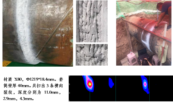 長輸油氣管道B型套筒角焊縫經(jīng)常出現(xiàn)延遲裂紋,但由于角焊縫結(jié)構(gòu)復(fù)雜,超聲和射線無法檢測,磁粉和滲透無法測量裂紋的深度。FGI技術(shù)可以節(jié)省打磨涂層的成本和時(shí)間,還可以測量 裂紋的深度和長度信息,為長輸管道的安全評(píng)估提供有效依據(jù)。