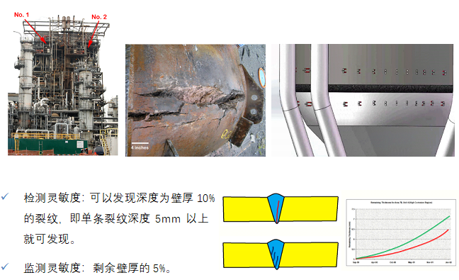 氣化爐外殼體筒體與上封頭及下錐體環(huán)焊縫在運(yùn)行過(guò)程中經(jīng)常發(fā)生裂紋泄漏事故,采用RTL變溫電阻陣列掃查技術(shù),對(duì)環(huán)焊縫進(jìn)行實(shí)時(shí)在線監(jiān)測(cè),可有效預(yù)防突然開(kāi)裂導(dǎo)致非計(jì)劃停機(jī)等安全事故。